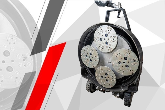 В качестве основных используются высокопроизводительные машины с тремя или четырьмя дисками. На каждом диске крепится до 6 штук алмазных сегментов. Увеличение количества дисков шлифовальных машин дает возможность производить все виды работ по обработке нового и реставрации старого бетонного основания несколько быстрее. Что важно для сокращения сроков строительства.В частности, повышение эффективности обработки при использовании машин с четырьмя дисками заметно на крупных объектах при выполнении большого объема работ.